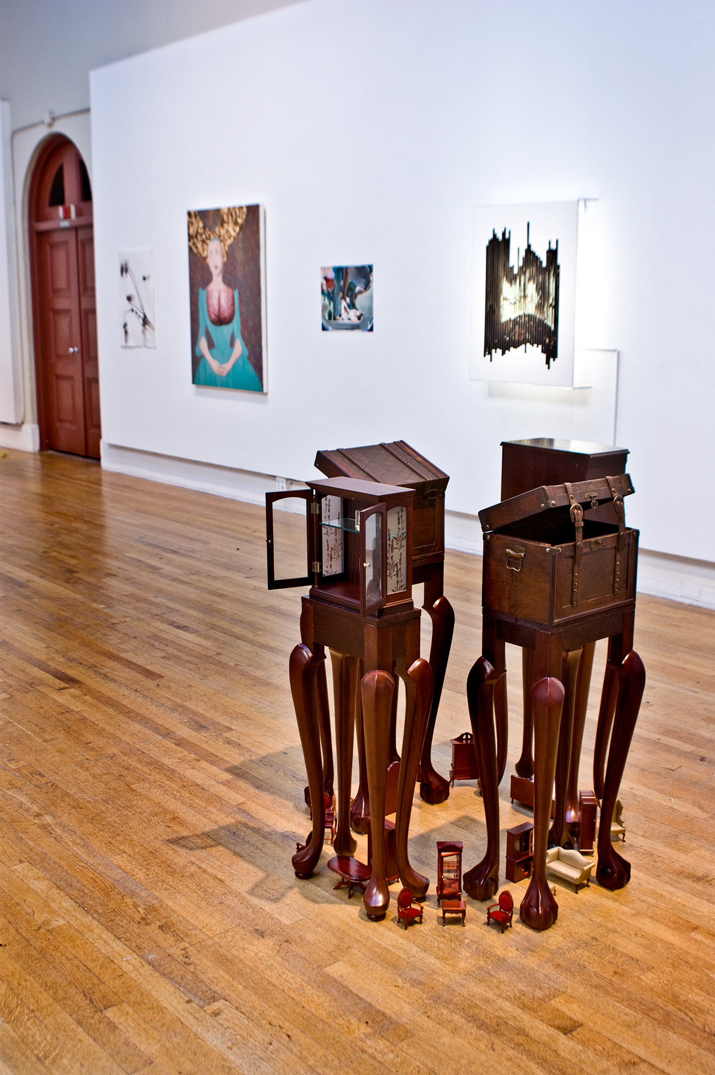 Victorian Relativity was a sculptural installation for the exhibit entitled "Dig" in the Diego Rivera Gallery, San Francisco. Doll house furniture was paired with other normal scale furniture that I constructed. The installation was created to inspire romantic ideas of relativity from the Victorian era.