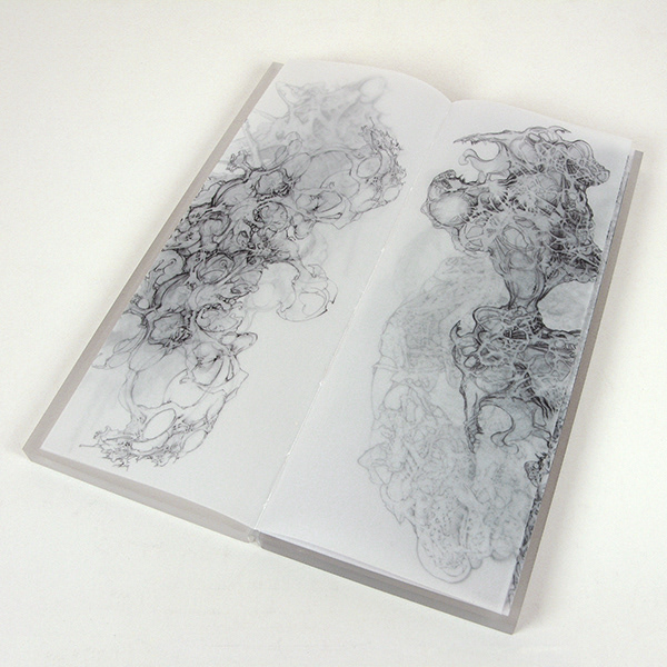 This is a hand-made limited edition book of my drawings. I used half inch frosted plexiglass for the covers, printed the images on vellum, and sewed the folios together with monofilament. This edition of 17 won the Artist Book Contest at the Anne Bremer Memorial Library in San Francisco, CA.