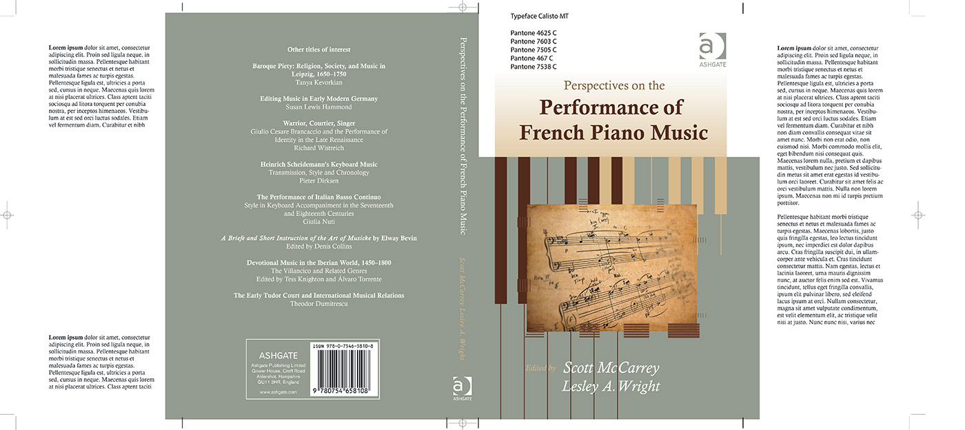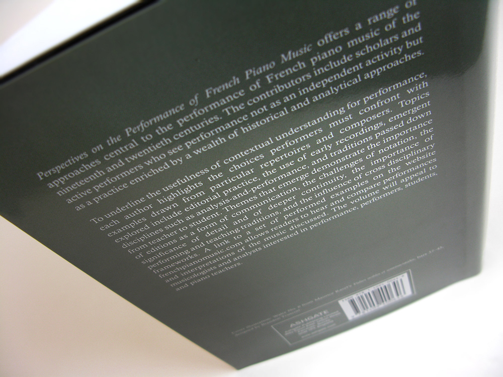 This Book Jacket design was commissioned by Ashgate Publishing Limited for Scott McCarrey and editors of the book, 'Perspectives on the Performance of French Piano Music'.