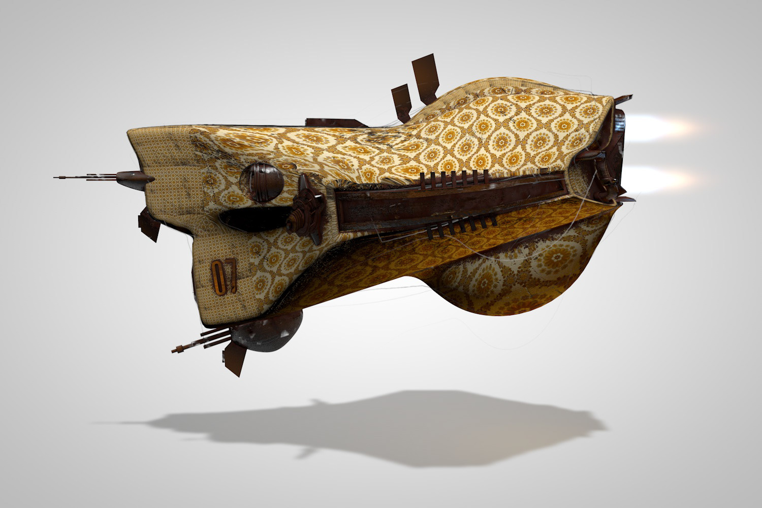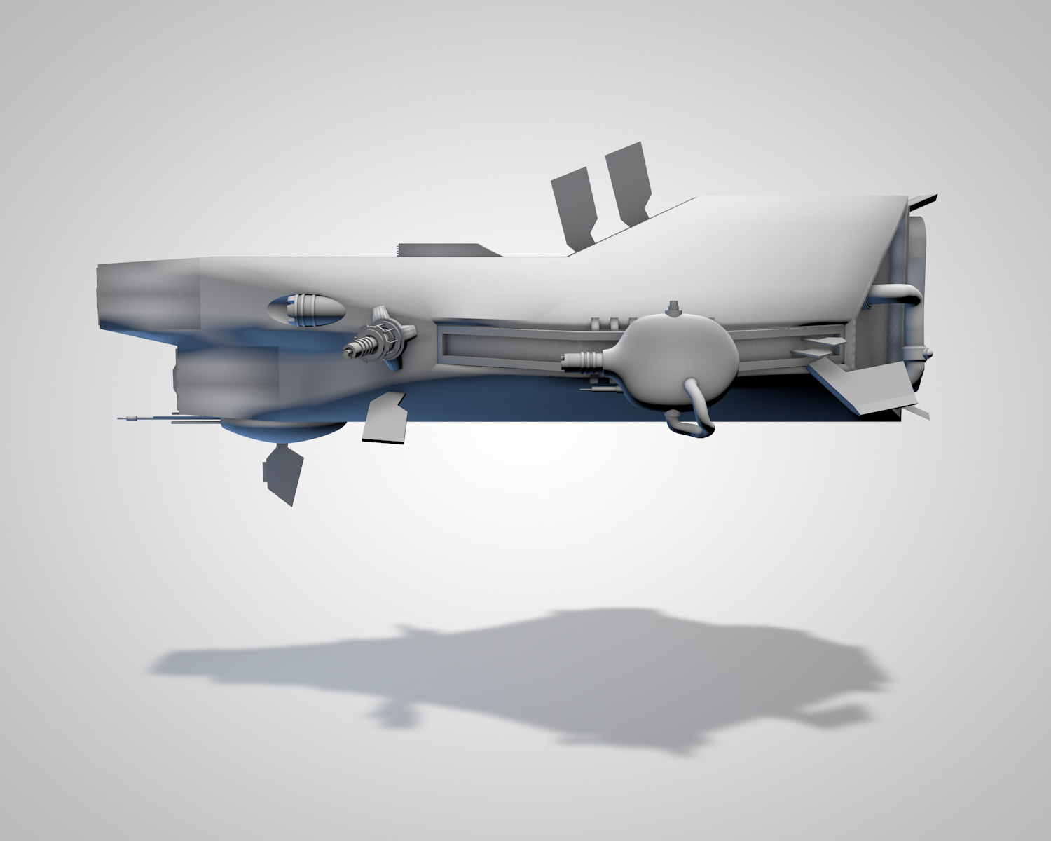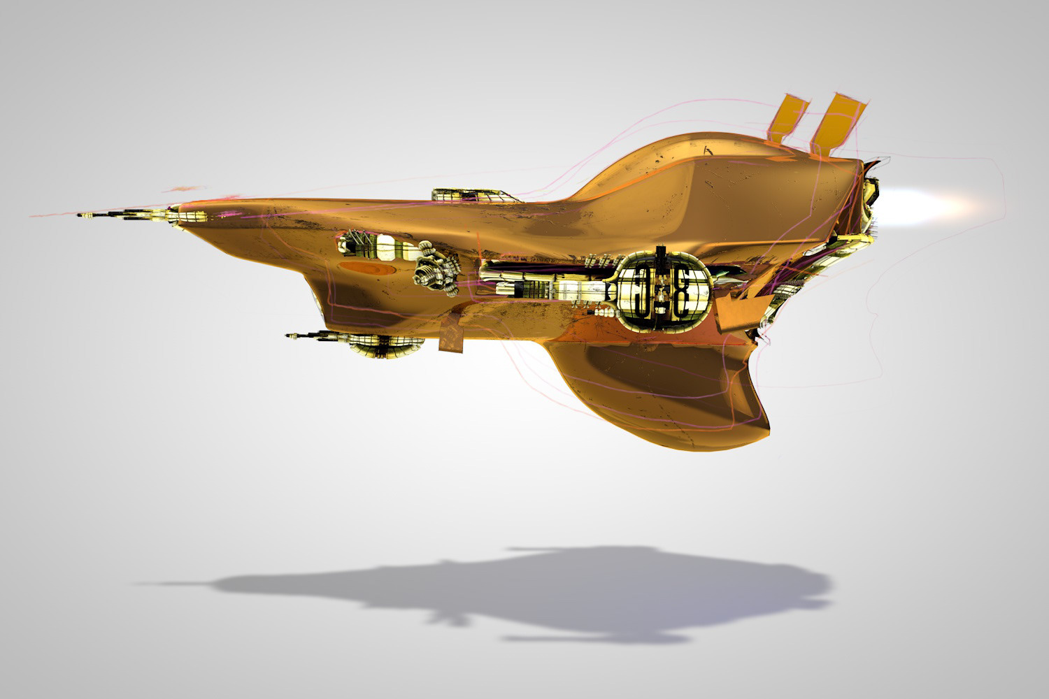 The Cruiser Spaceship 3D concept renderings were made using Sketch & Toon and the standard render engine in Cinema4D.