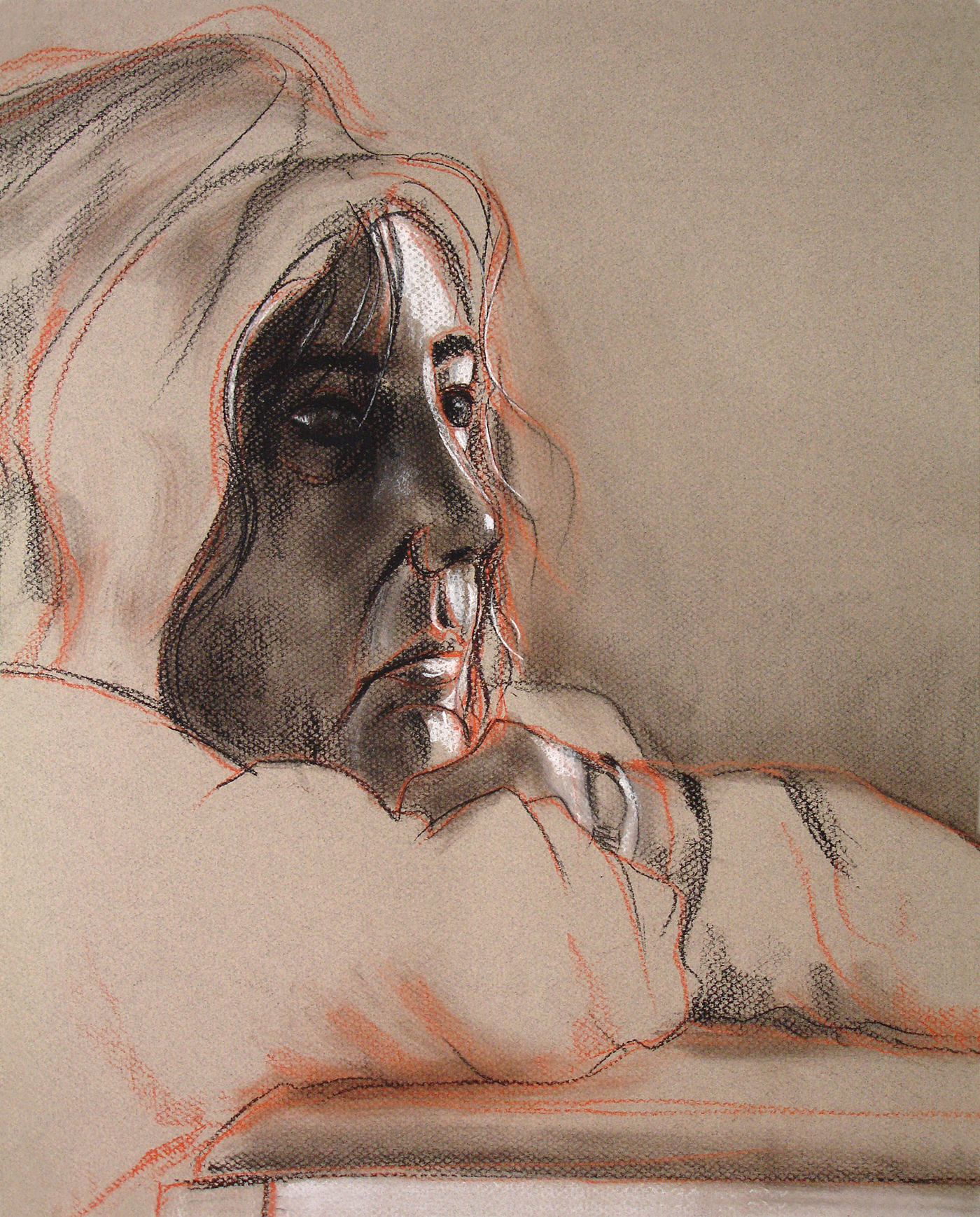 A set of figure portraits drawn from live models with Conté Crayon.
