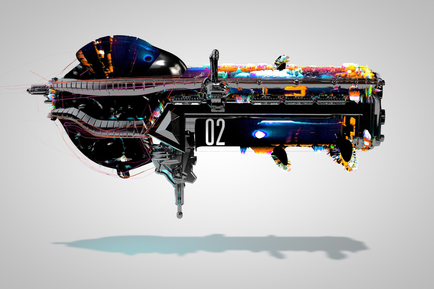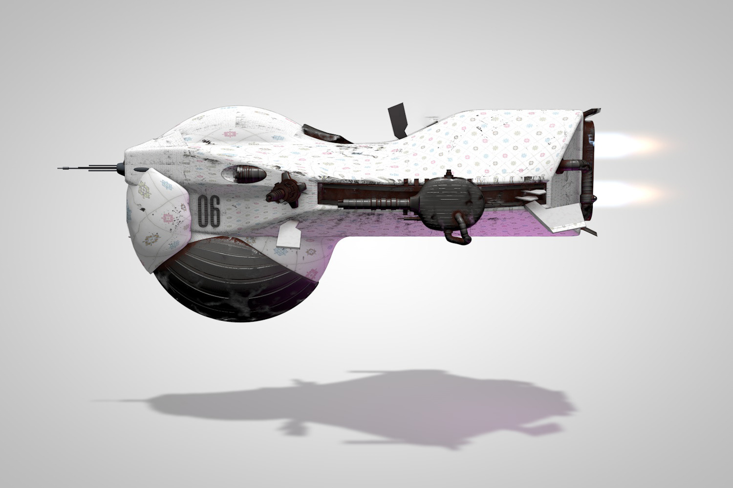 The Gunner Spaceship 3D concept renderings were made using Sketch & Toon and the standard render engine in Cinema4D.