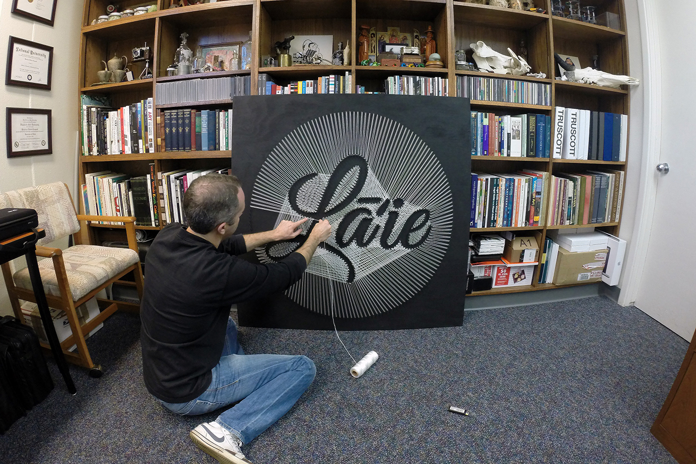 The Laie Sign String Typography was created to commemorate the 60th anniversary of BYU Hawaii in Laie, Hawaii. The sign was purchased by the university and was on display for the annual 2015 faculty Evening of Fine Arts in the DOMA Gallery. The sign made with plywood, nails and string is now on permanent display at the Polynesian Cultural Center. Laie String Type was featured in the 2015 PRINT RDA, the AIGA Member Gallery, Typdose.net, and included in the book ‘The Making of Artistic Typefaces’ Sendpoints Publishing Co. (2016, Hong Kong).
